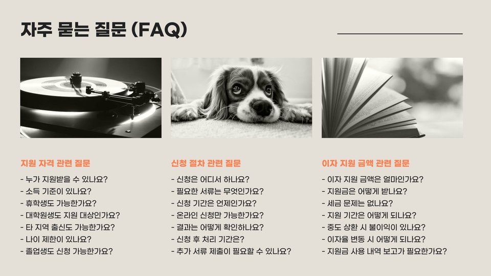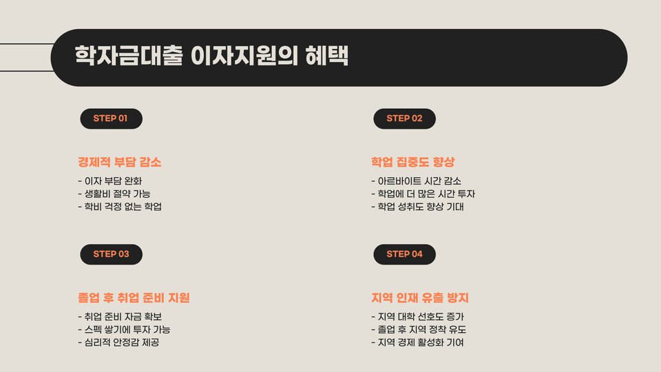 - 이자 지원은 졸업 후 일정 기간 내에 반환되어야 하며, 각 개인의 조건에 따라 다름.