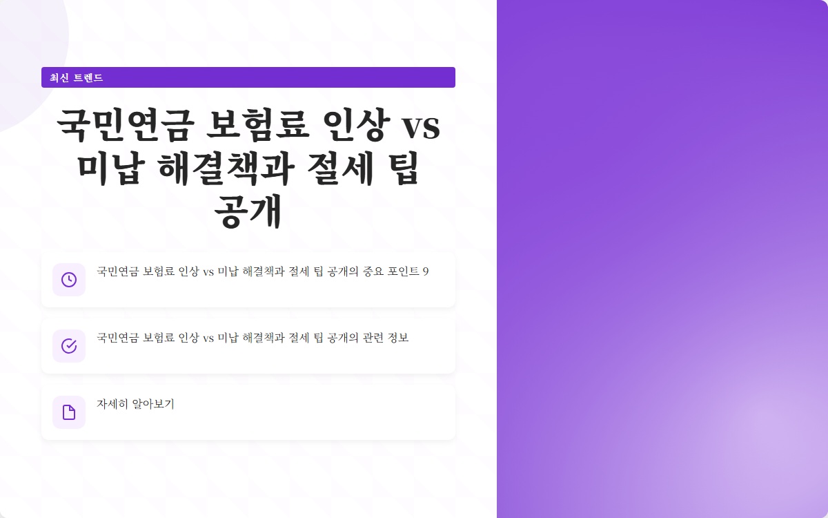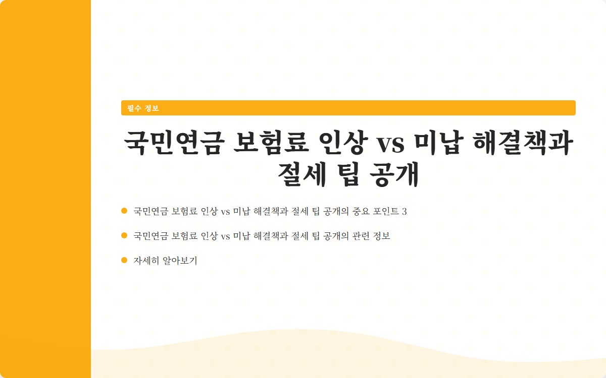 국민연금 보험료 인상 vs 미납 해결책과 절세 팁 공개 바로가기