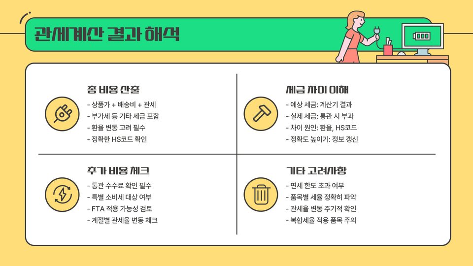 • 품목마다 적용되는 세율을 미리 확인하는 것이 중요합니다.