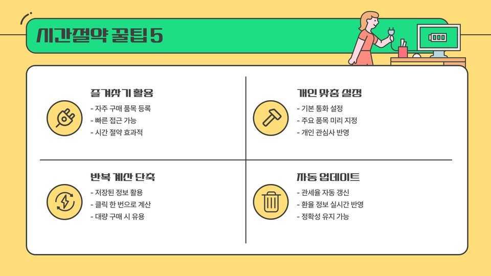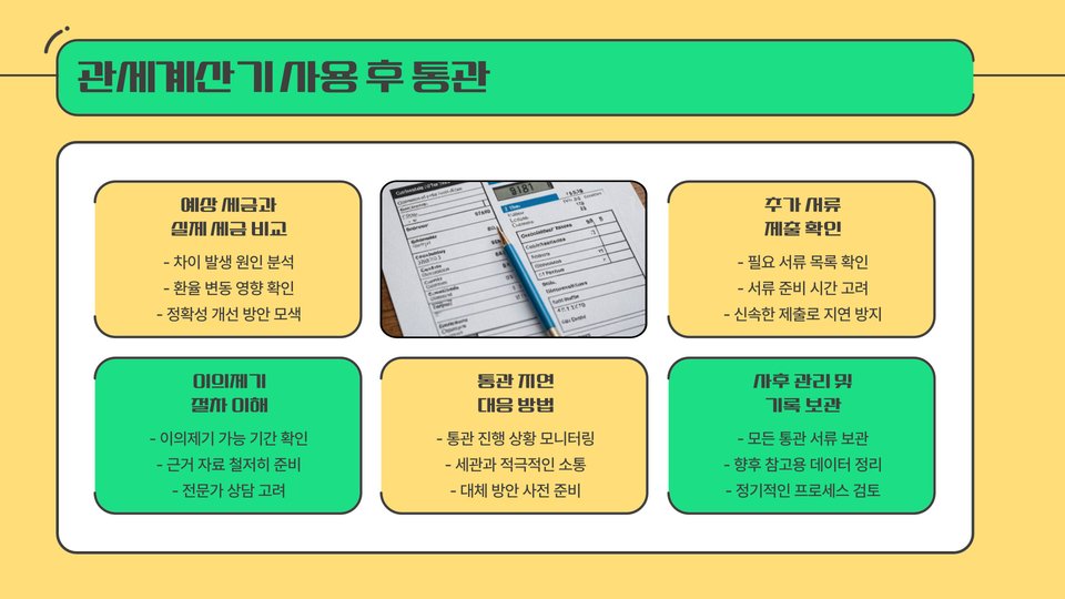 관세계산기를 효과적으로 활용하기 위해서는 몇 가지 팁이 있습니다. 첫째, 미리 필요한 서류를 준비하는 것이 좋습니다. 소득 증명서나 공제 증명서 등을 미리 확보해 두면 입력 과정에서 시간을 절약할 수 있습니다. 둘째, 자주 사용하는 계산기 기능은 즐겨찾기 해두면 편리합니다.