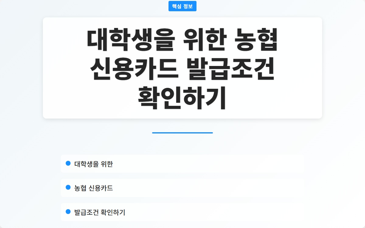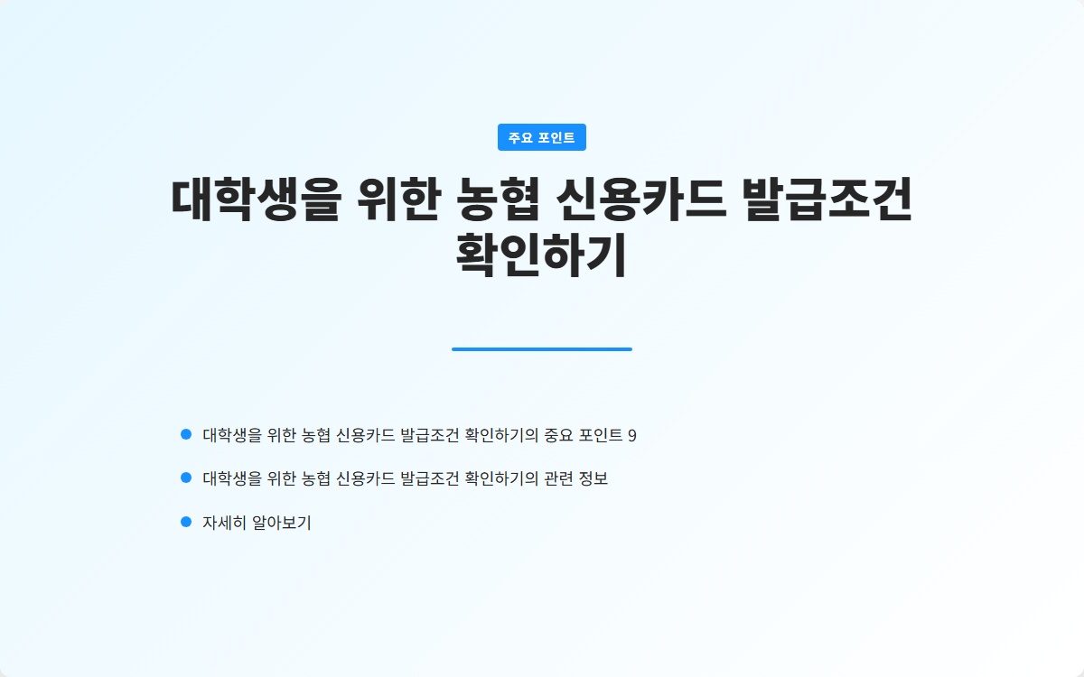 대학생을 위한 농협 신용카드 발급조건 확인하기