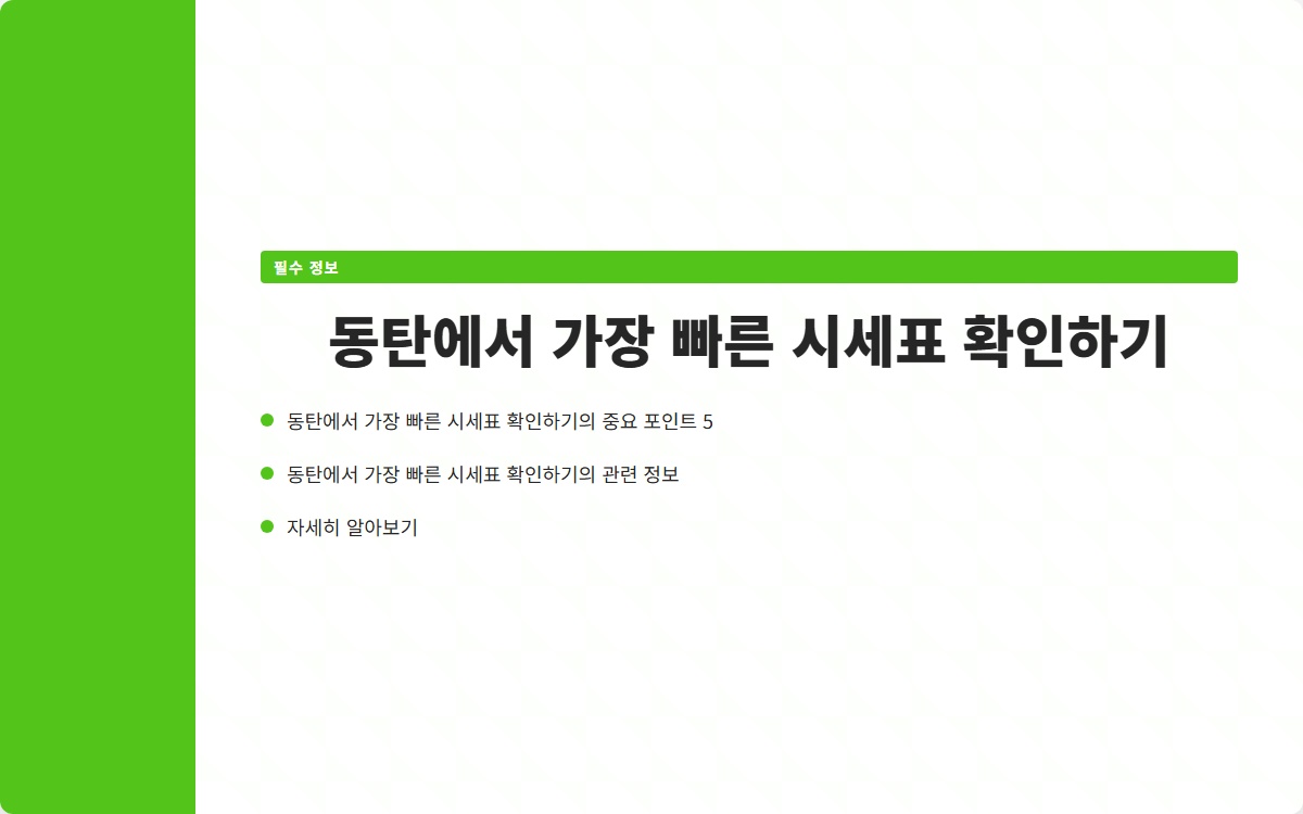 동탄은 최근 몇 년간 급격한 발전을 이루며 주거지로서의 인기를 얻었습니다. 그래서 많은 사람들이 동탄의 부동산 시세에 대해 관심을 가지고 있습니다. 특히 신속하고 정확한 시세표를 확인할 수 있는 방법에 대한 정보가 필요합니다. 이 글에서는 동탄에서 시세표를 빠르게 확인할 수 있는 다양한 방법과 유용한 팁을 제공하겠습니다.