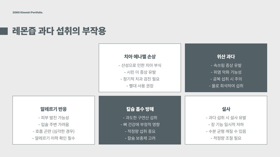 둘째, 레몬즙을 과다하게 섭취하면 위장에 부담을 줄 수 있습니다. 특히 위염이나 위장 질환이 있는 사람은 섭취량을 조절해야 합니다. 적당한 양을 유지하면서 건강을 챙기는 것이 중요합니다.