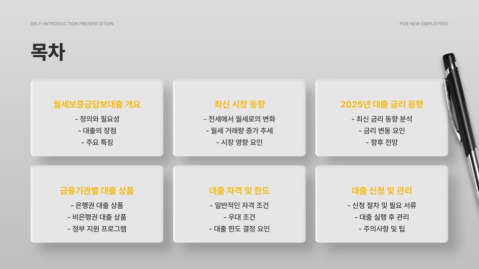 보증금 월세보증금담보대출은 현대인의 주거 문제를 해결하는 데 큰 역할을 하고 있습니다. 이 대출 방식은 경제적인 부담을 줄이면서도 안전한 주거 환경을 마련하는 데 기여하고 있습니다. 그러나 신중한 대출 선택과 철저한 준비가 요구됩니다. 불확실한 시장에서 안정적이고 지혜로운 결정이 필요하며, 대출 상품을 잘 활용하는 것이 매우 중요합니다.
