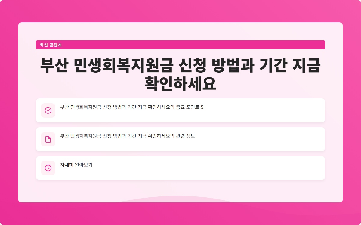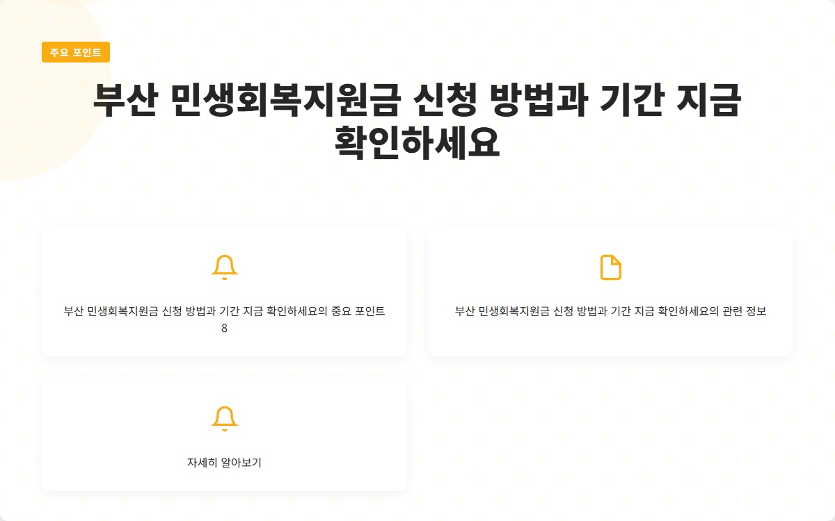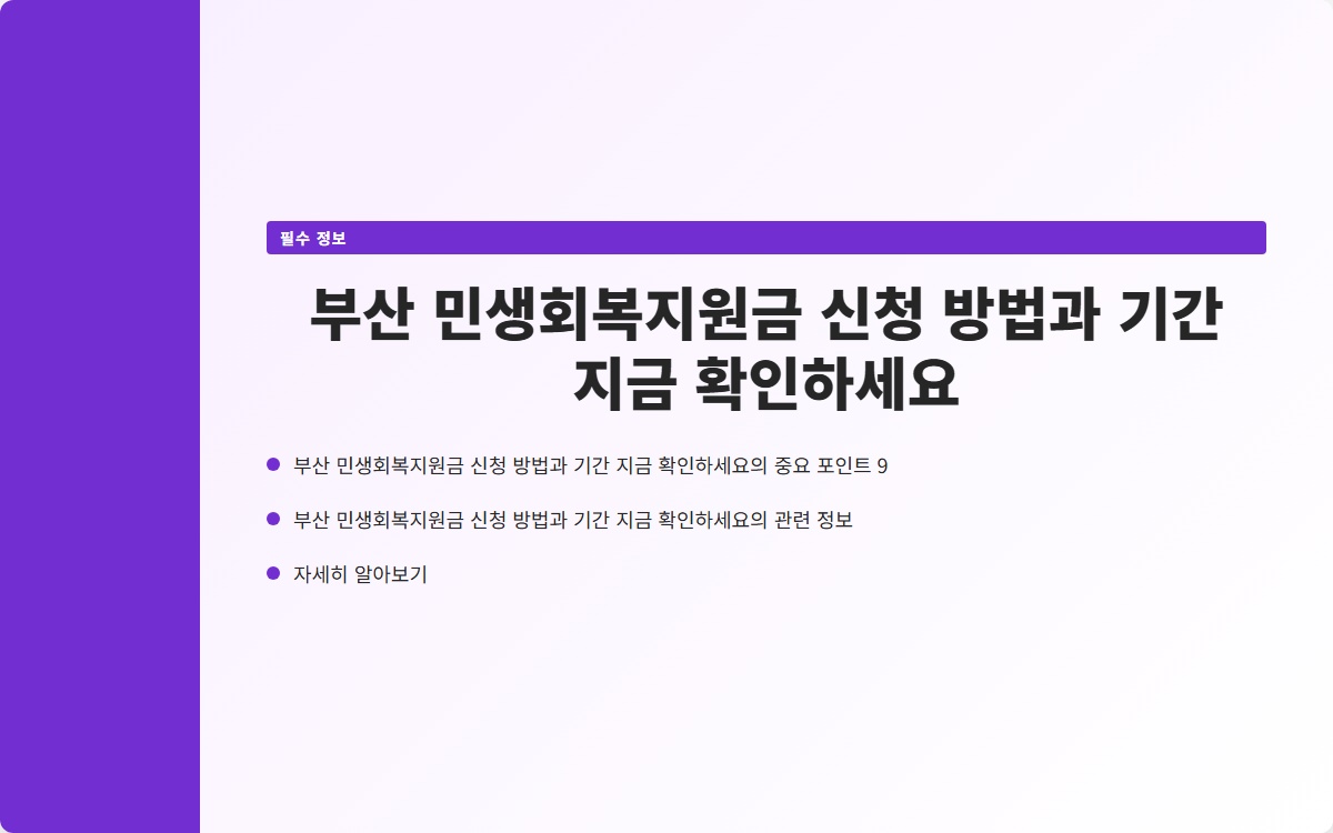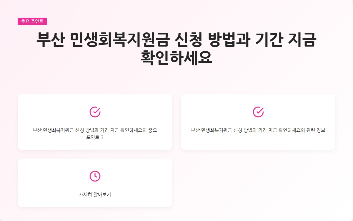 부산 민생회복지원금은 저소득층과 취약계층에게 실질적인 도움을 주기 위해 설계된 정책입니다. 신청 방법과 기간을 정확히 이해하고, 빠르게 신청하시길 추천드립니다!