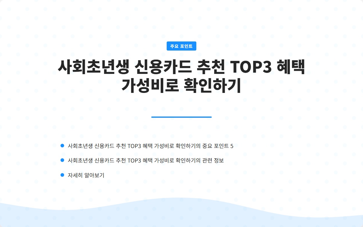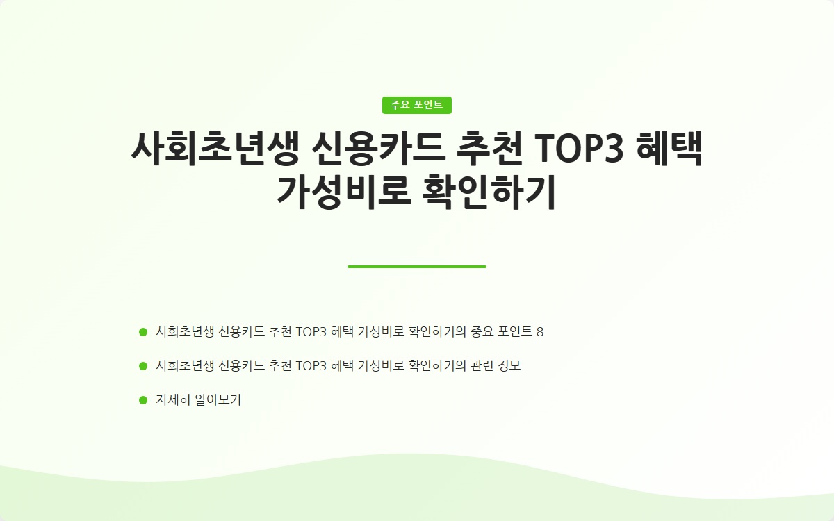 사회초년생에게 신용카드는 재정적인 독립과 소비 관리를 위한 중요한 도구입니다. 특히, 가성비 높은 카드 선택은 매우 중요한 요소입니다. 소비가 많지 않은 사회초년생에게 가장 적합한 신용카드는 무엇인지 알아보도록 하겠습니다.