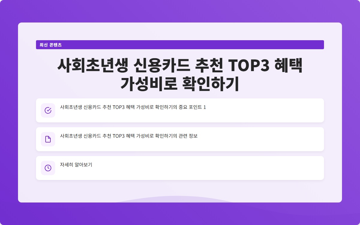 사회초년생으로서 신용카드를 선택하는 것은 매우 중요합니다. 왜냐하면 신용카드는 단순한 결제 수단을 넘어서, 재정 관리와 신용 점수 향상에 큰 영향을 미치기 때문입니다. 하지만 많은 선택지 속에서 어떤 카드를 선택해야 할지 고민하는 분들이 많습니다. 이번 포스팅에서는 사회초년생에게 적합한 신용카드 3종을 추천하고, 각 카드의 혜택과 가성비를 상세히 살펴보겠습니다.