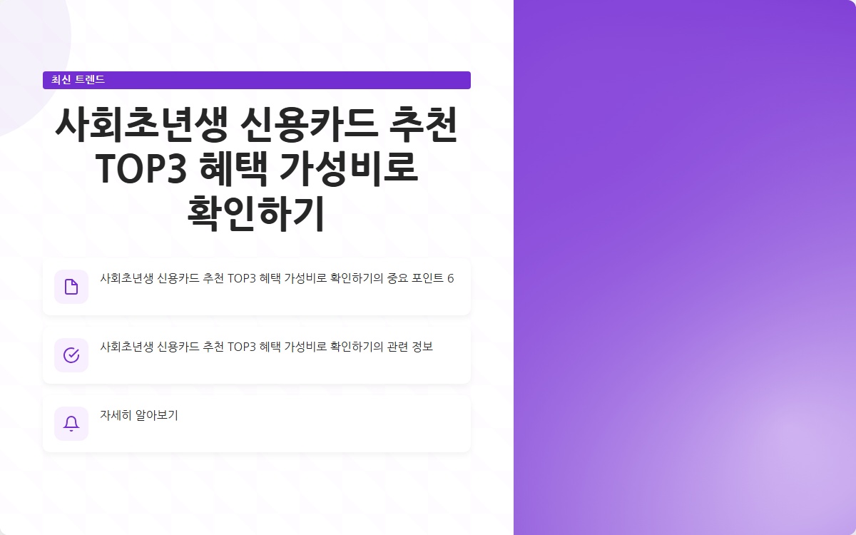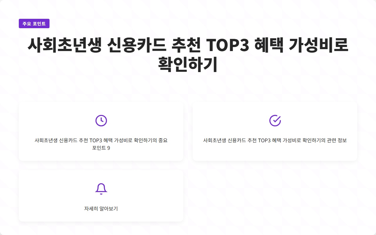 사회초년생으로서 신용카드를 선택하는 것은 매우 중요합니다. 왜냐하면 신용카드는 단순한 결제 수단을 넘어서, 재정 관리와 신용 점수 향상에 큰 영향을 미치기 때문입니다. 하지만 많은 선택지 속에서 어떤 카드를 선택해야 할지 고민하는 분들이 많습니다. 이번 포스팅에서는 사회초년생에게 적합한 신용카드 3종을 추천하고, 각 카드의 혜택과 가성비를 상세히 살펴보겠습니다.