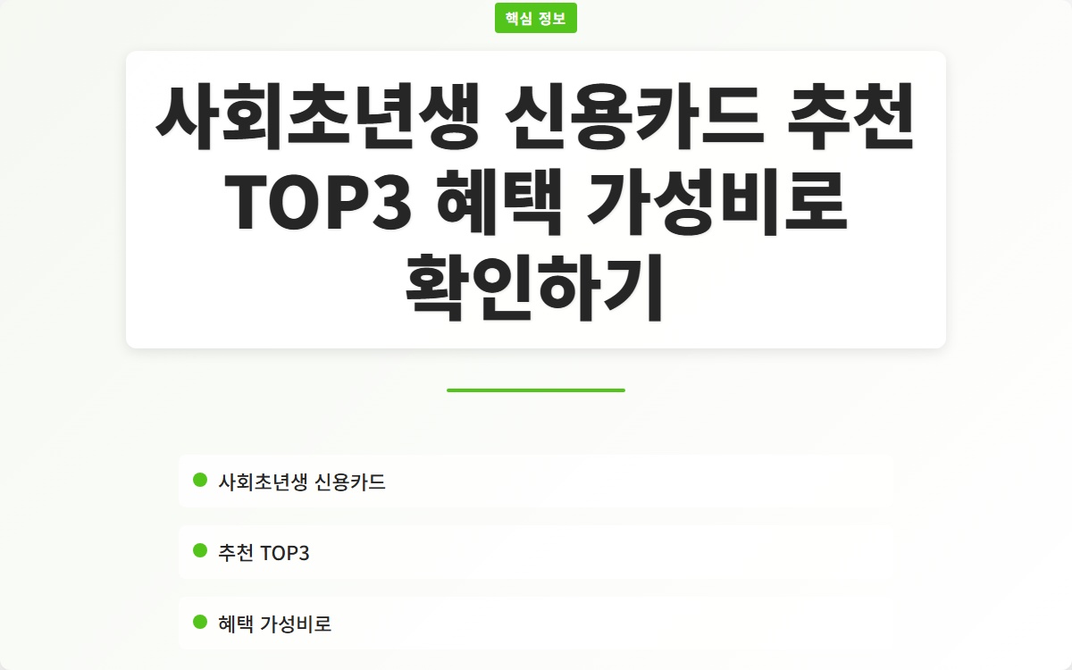 사회초년생 신용카드 추천 TOP3 혜택 가성비로 확인하기