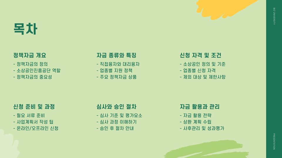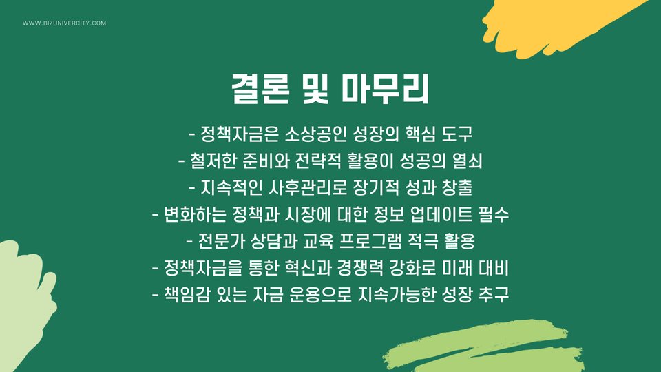 소상공인진흥공단의 정책자금은 소상공인에게 큰 힘이 되는 자원입니다. 하지만 이 자금을 효과적으로 활용하기 위해서는 철저한 준비와 관리가 필요합니다. 본 가이드를 참고하여 신청부터 실행까지의 과정을 잘 이해하고, 성공적인 사업 운영에 기여하시길 바랍니다.