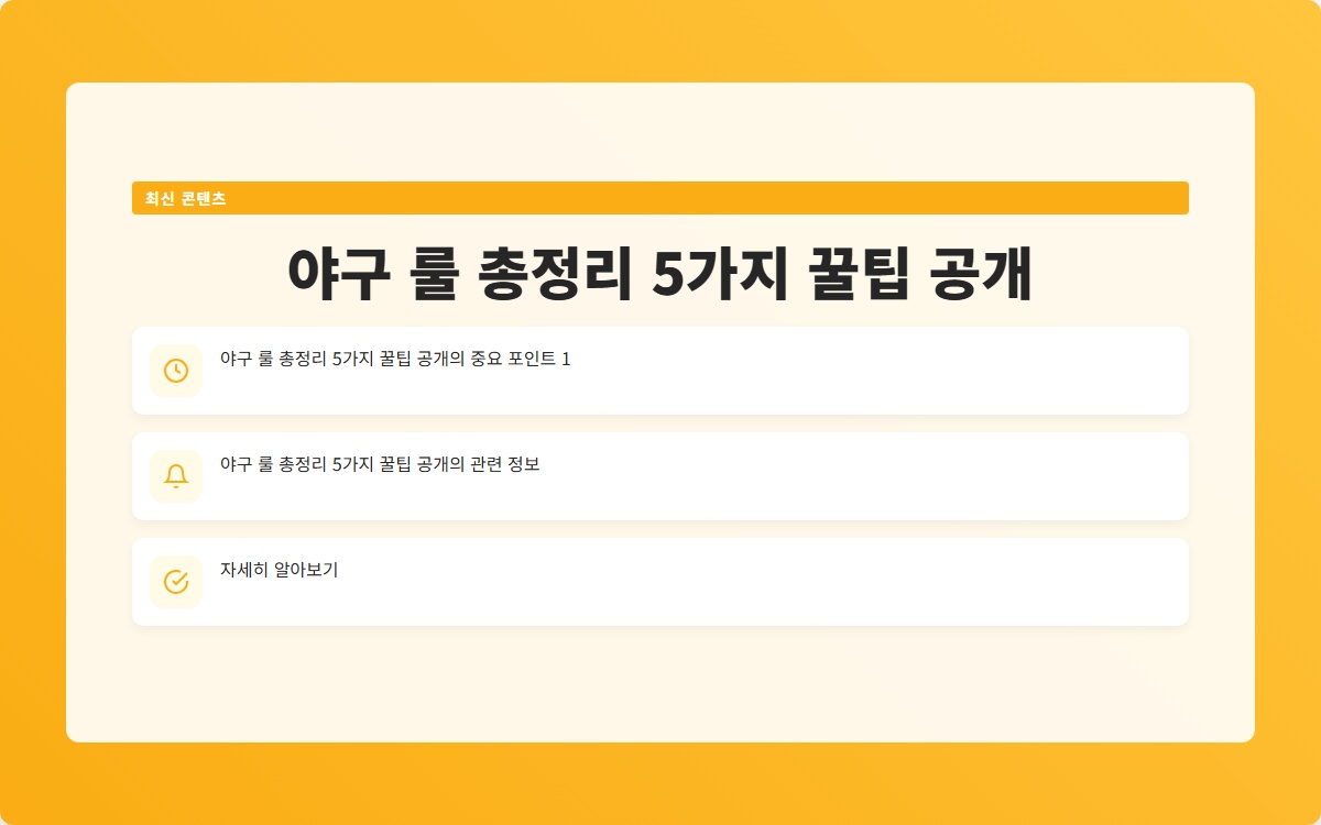 이 글에서 야구 룰 총정리와 꿀팁을 통해 야구를 쉽게 이해할 수 있는 방법을 소개합니다. 지금 확인해보세요!