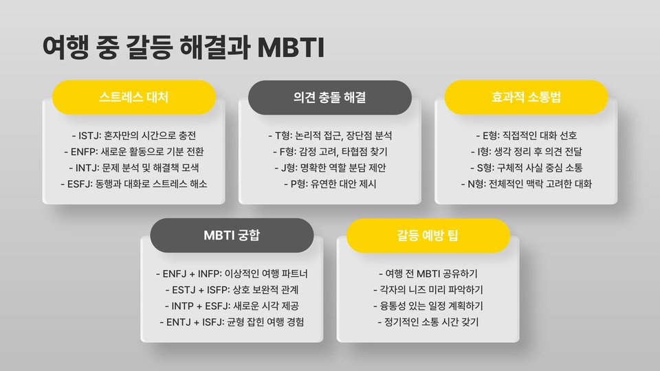 - 여행 계획 시 동행자의 MBTI도 고려해야 한다.