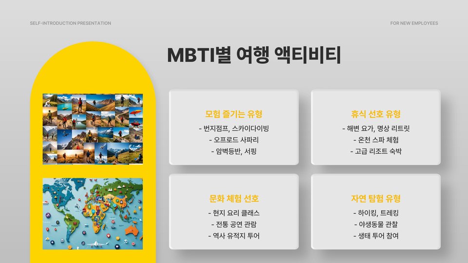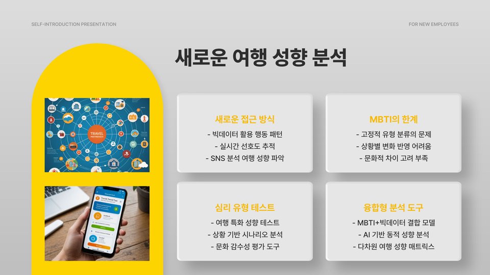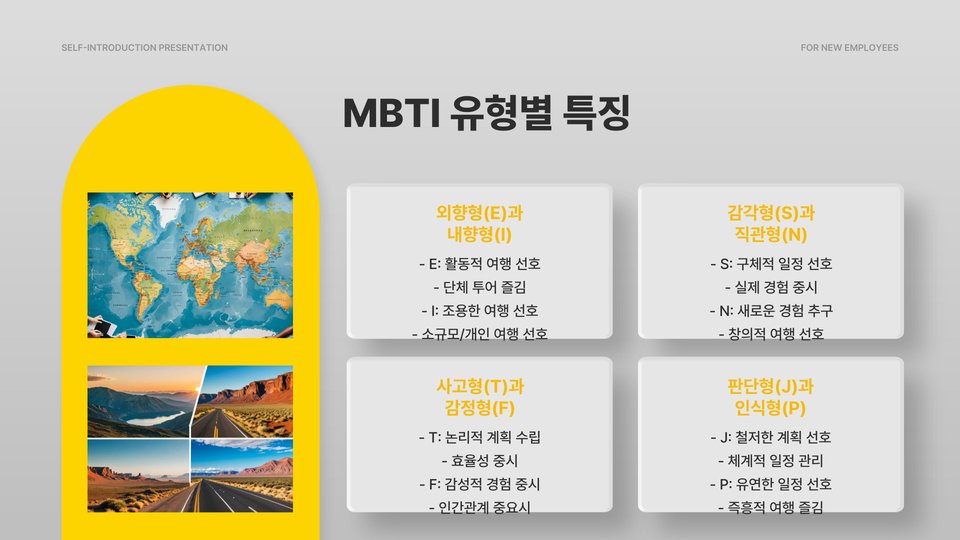 - MBTI는 여행 스타일을 이해하는 데 유용하다.
