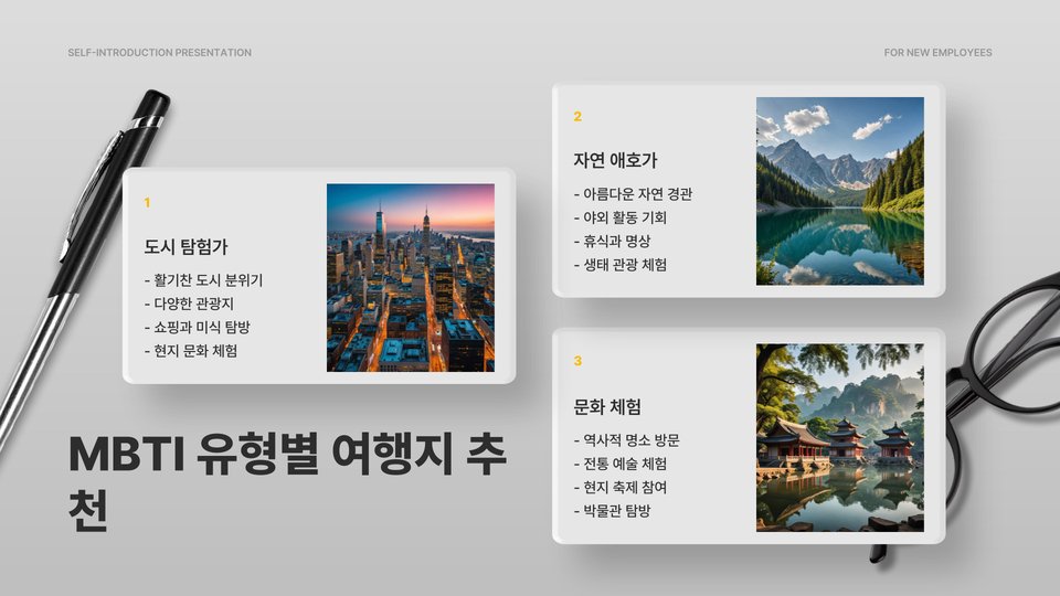 - 각 성격 유형에 맞는 추천 여행지가 있다.
