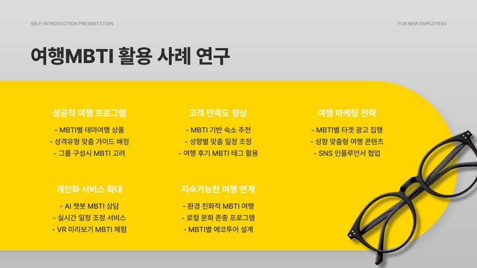- 개인화된 여행 경험을 위해 MBTI를 적극 활용하자.