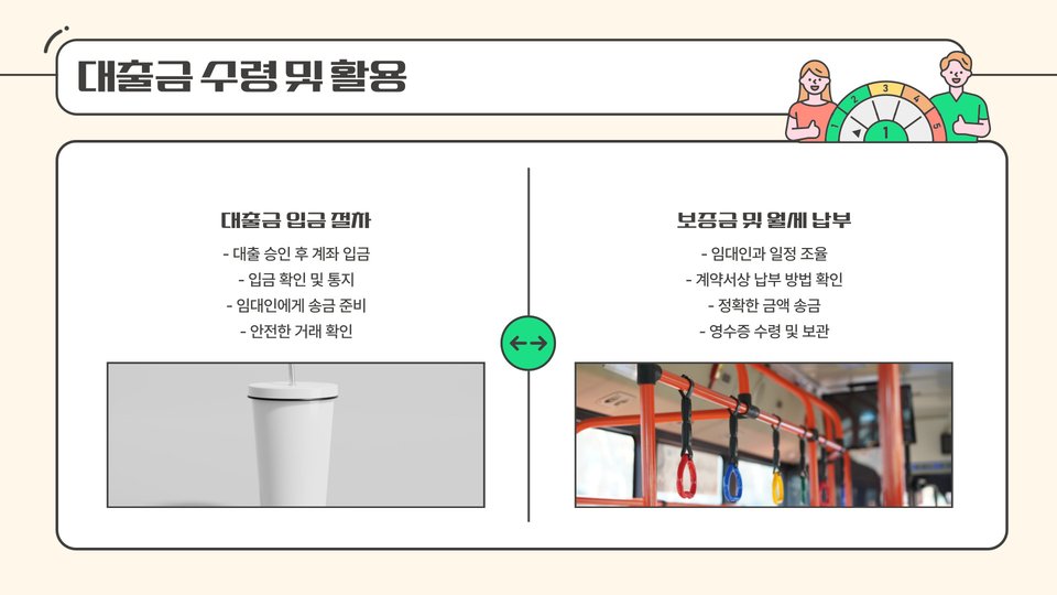 마지막으로, 카카오의 월세보증금대출은 유연한 상환 조건을 제공합니다. 대출 후 상환 방법을 고객의 상황에 맞춰 선택할 수 있어, 경제적 부담을 줄일 수 있습니다. 예를 들어, 매월 일정 금액을 상환하거나 만기 일시상환도 가능합니다. 이는 개인의 재정 상태에 따라 최적의 방법을 선택할 수 있도록 해줍니다.