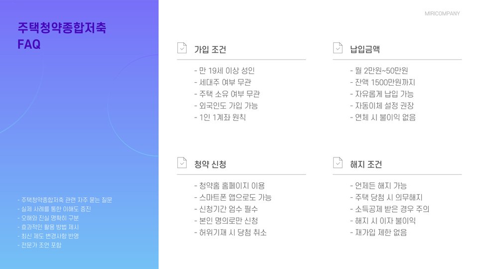 주택청약종합저축의 주요 포인트: