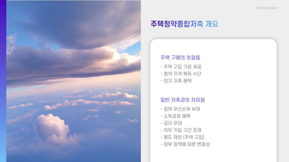 • 주택청약종합저축은 정부 지원으로 주택 구매 기회를 제공