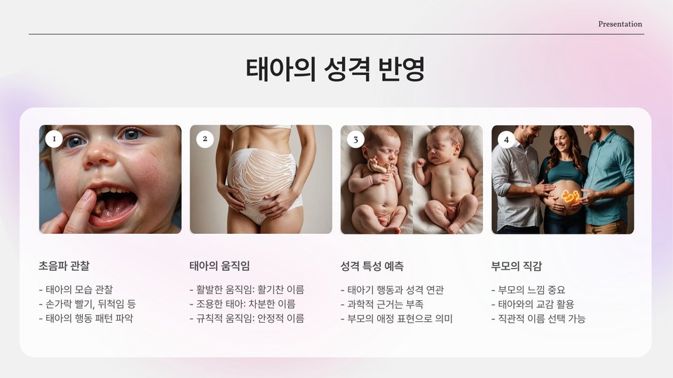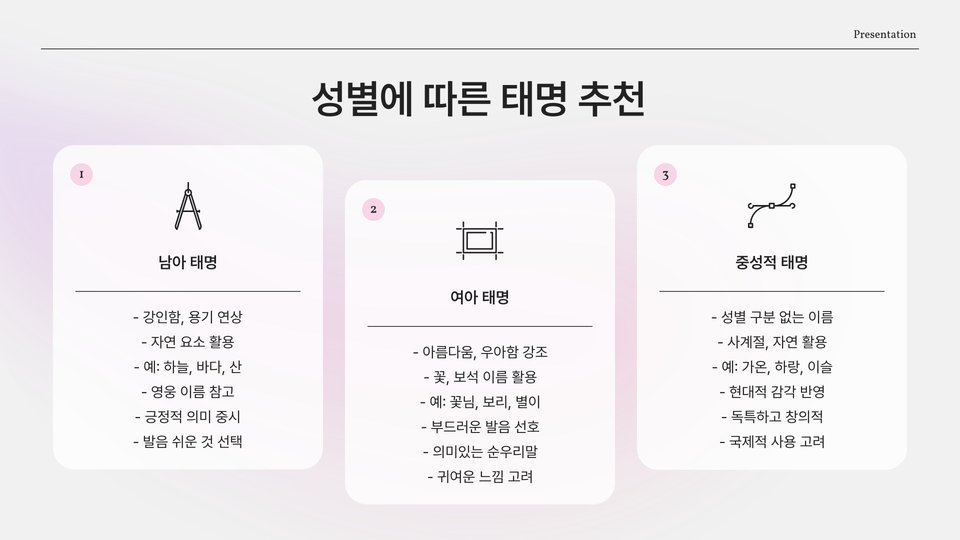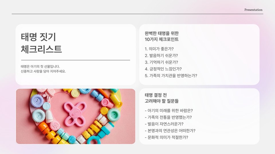 - 태명은 아기의 첫 인상이자 부모의 사랑을 상징합니다.