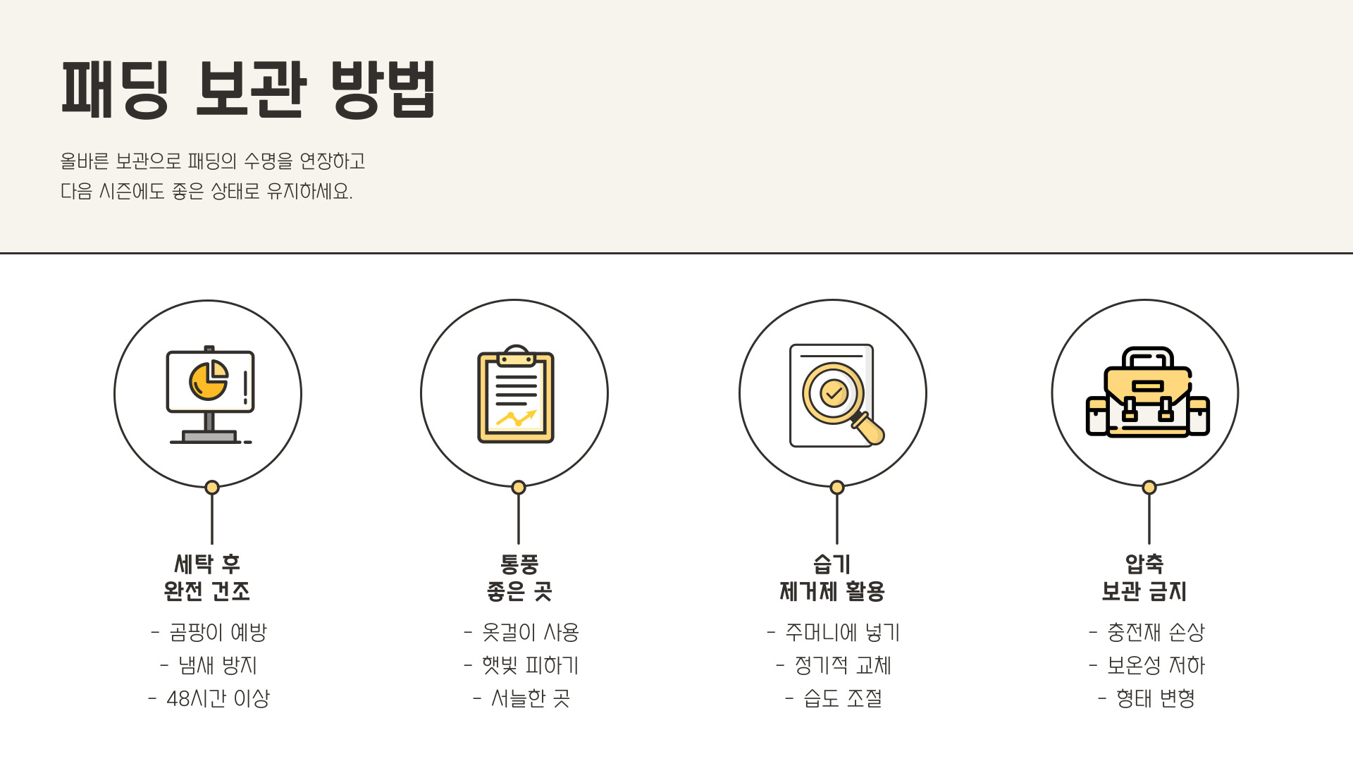 - 패딩은 옷걸이에 걸어 보관할 것