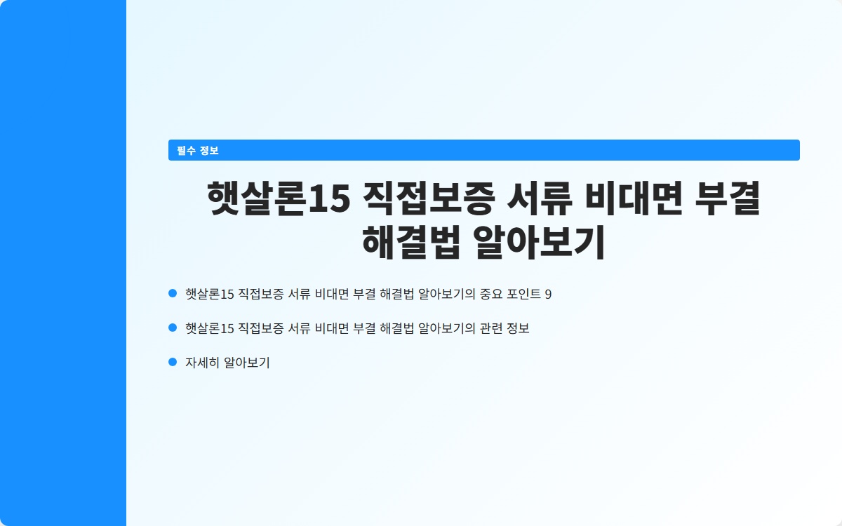 햇살론15는 저소득층을 위한 정부 지원 대출 상품으로, 금융 접근성이 낮은 분들에게 큰 도움을 주고 있습니다. 최근 비대면으로 진행되는 햇살론15 직접보증 신청이 증가하면서, 서류 제출 과정에서 발생하는 부결 문제도 늘어나고 있습니다. 이번 포스트에서는 비대면 부결 해결법에 대해 알아보겠습니다.