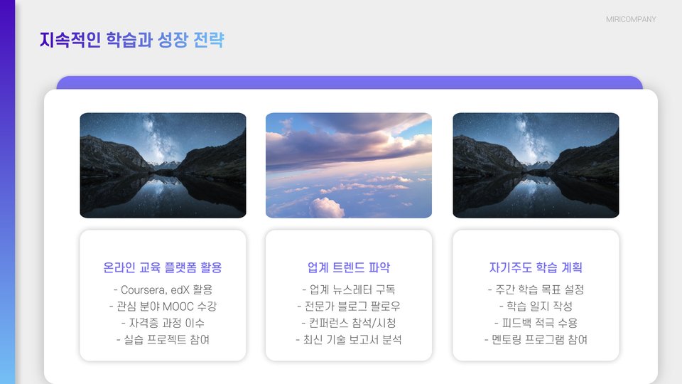- 지속적인 자기계발을 통해 더 나은 커리어를 만들어가세요.