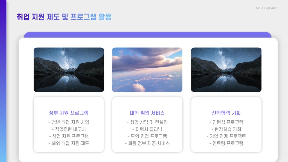 취업을 준비하는 여러분에게 도움이 될 만한 취업조언을 소개 하겠습니다. 고용노동부가 주관하는 다양한 프로그램과 지원 사항은 구직자들에게 더욱 폭넓은 기회를 제공합니다. 지금부터 꼭 필요한 취업조언 5가지를 살펴보겠습니다.