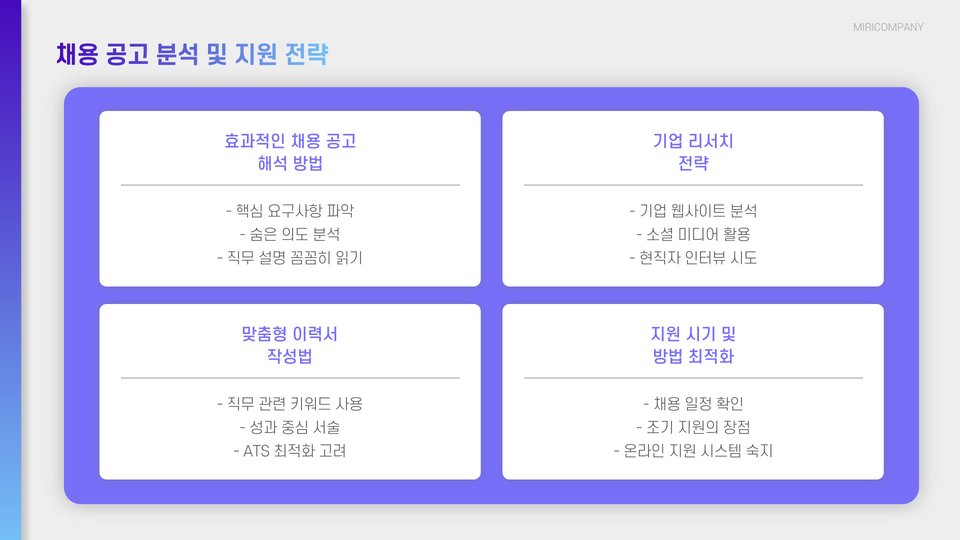 - 맞춤형 이력서와 자기소개서를 준비하세요.