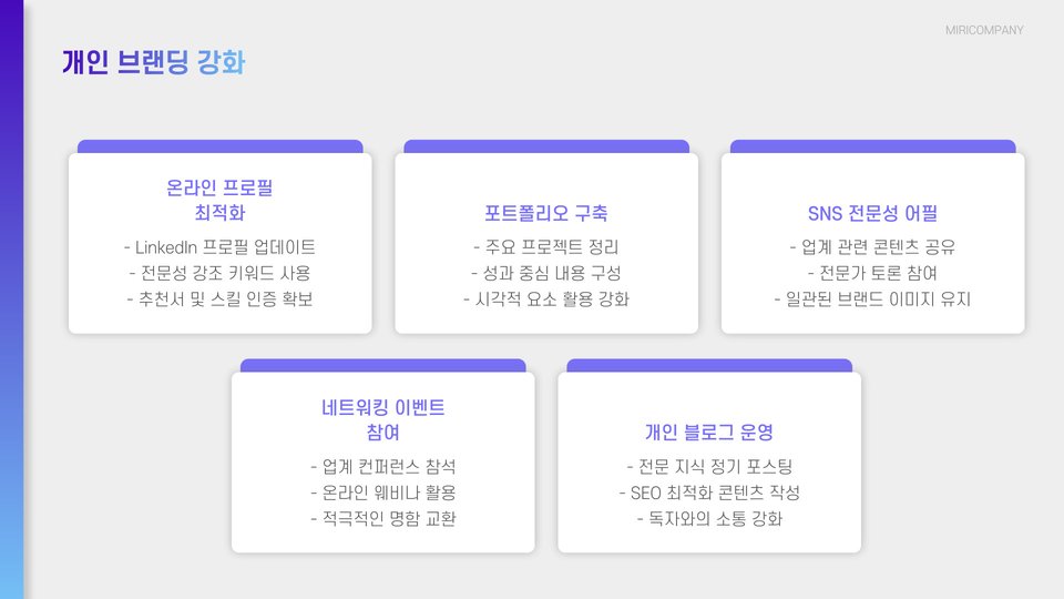 또한, 소셜 미디어를 활용해 전문적인 커뮤니티에 가입하고, 자신의 전문성을 연마하는 것도 좋은 방법입니다. LinkedIn과 같은 플랫폼에서 프로필을 지속적으로 업데이트하며, 관련 업종에 있는 사람들과 소통을 늘려보세요.