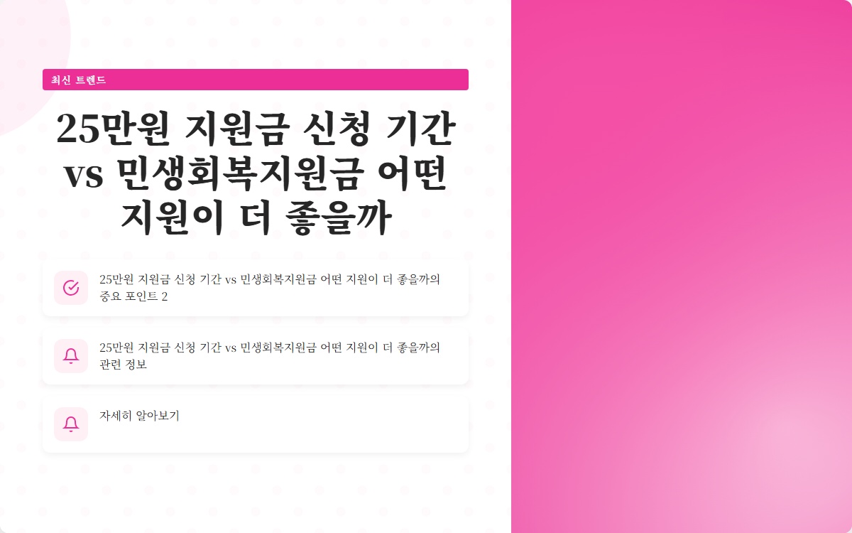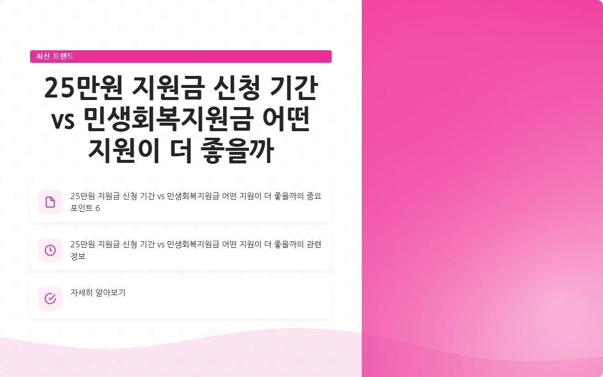 2025년 이재명 25만원 지원금과 민생회복지원금의 신청 방법과 혜택을 비교하면 다음과 같습니다. 이 정보를 통해 여러분이 어떤 지원금이 더 유리한지 이해하는 데 도움이 되길 바랍니다.