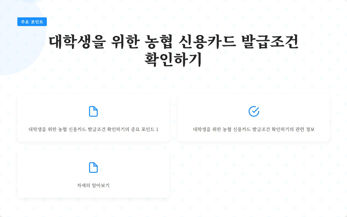 대학생을 위한 농협 신용카드 발급조건 확인하기