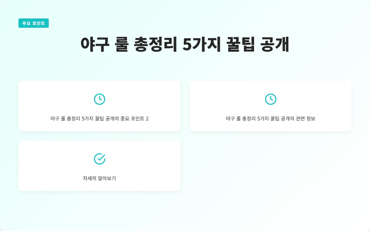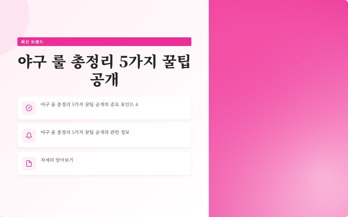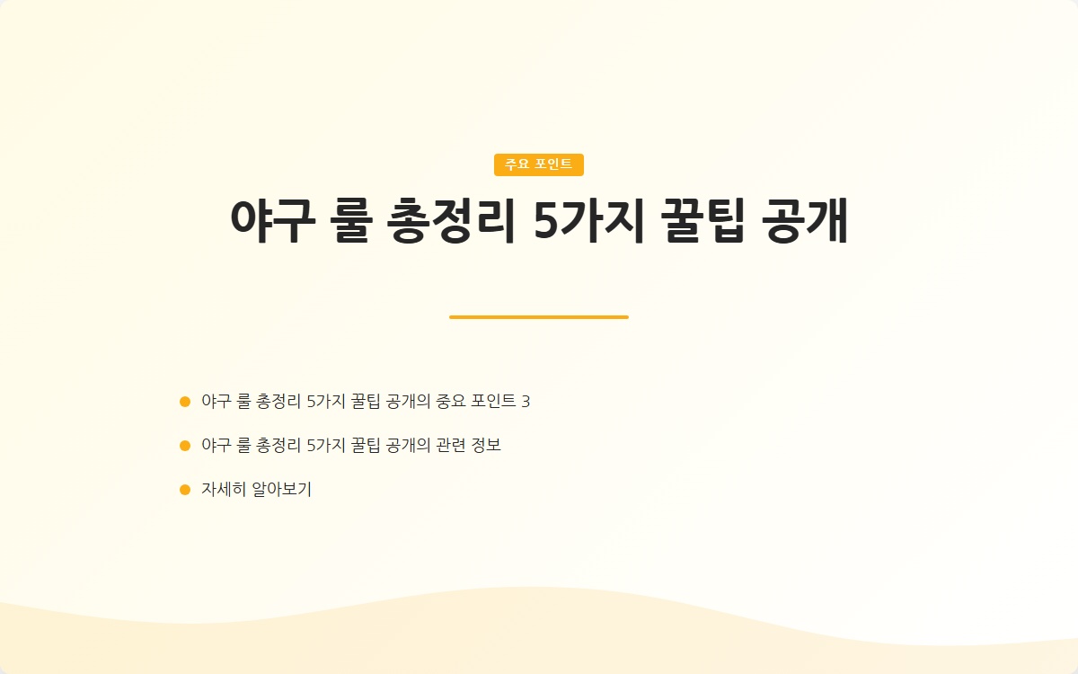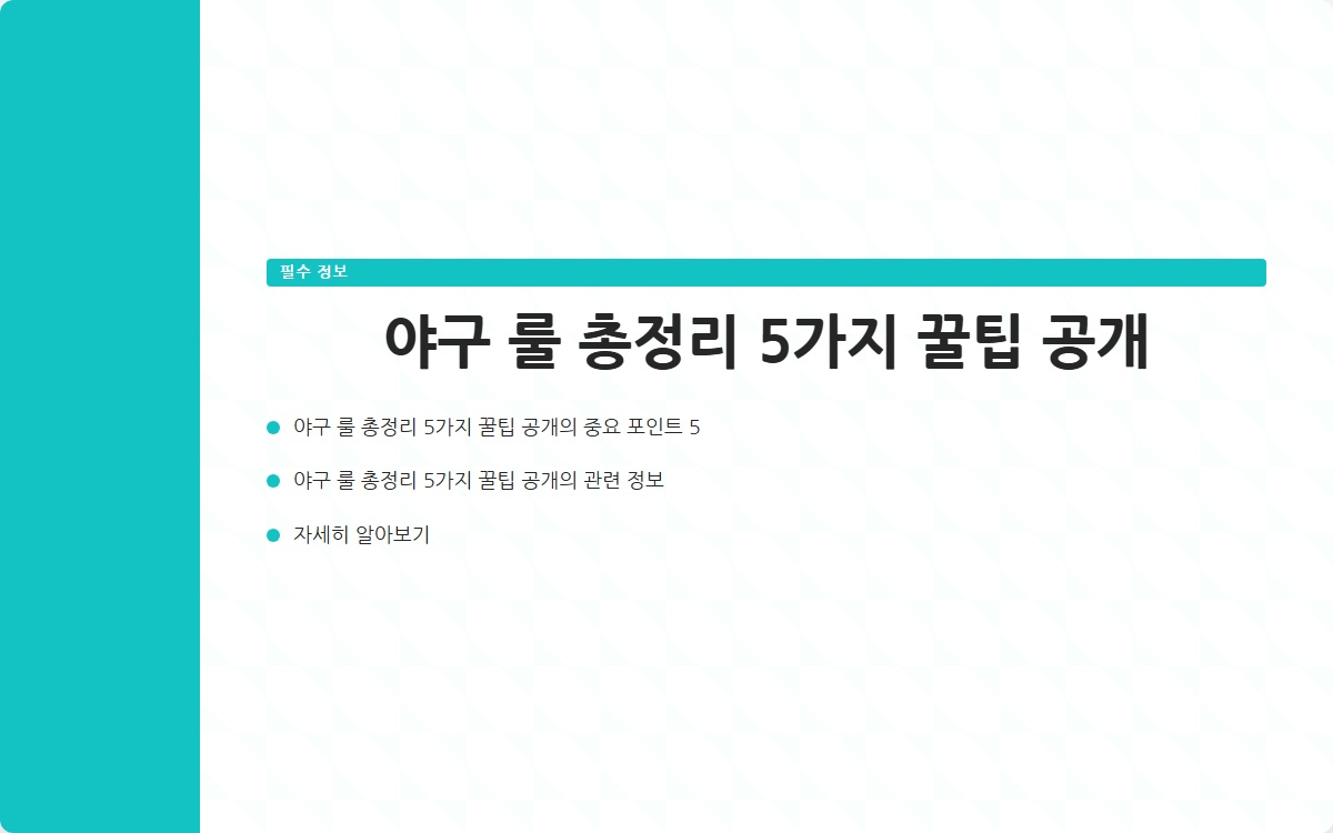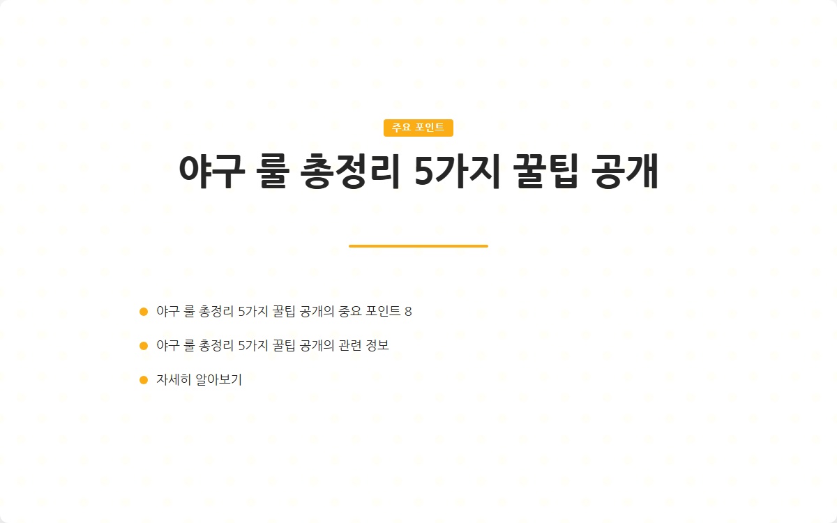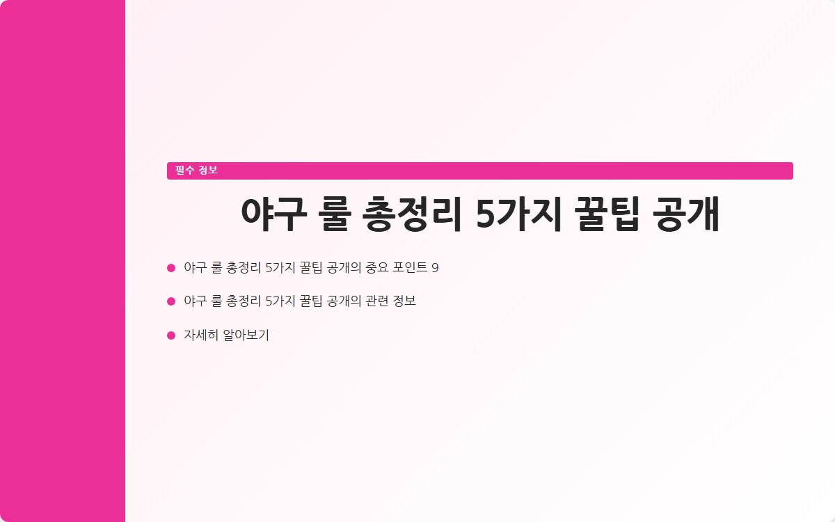 이 글에서 야구 룰 총정리와 꿀팁을 통해 야구를 쉽게 이해할 수 있는 방법을 소개합니다. 지금 확인해보세요!