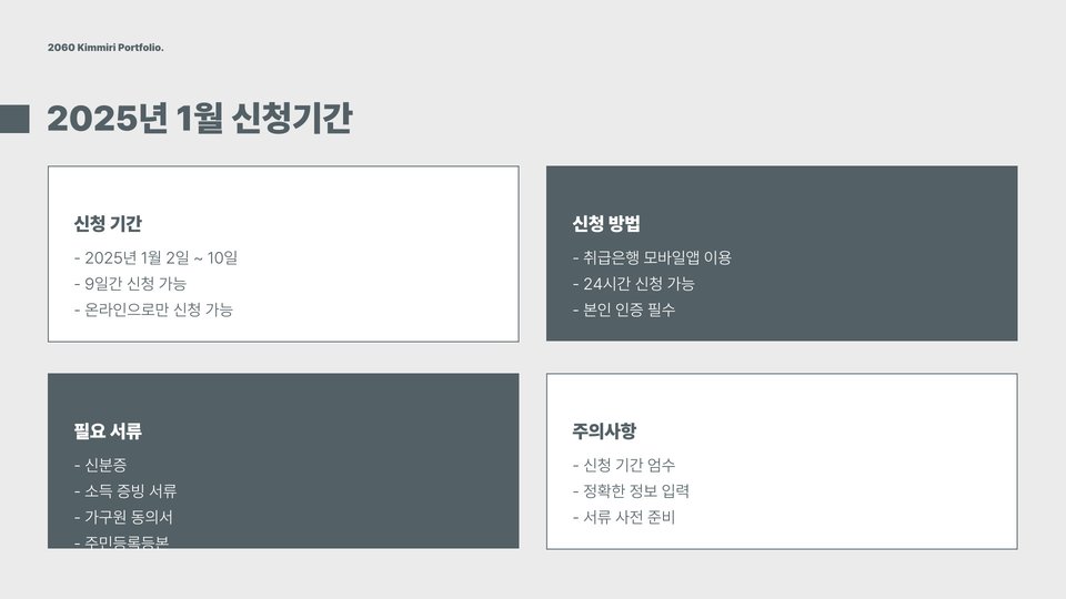신청 시 필요한 준비물에 대해서도 미리 확인해두어야 합니다. 필요한 서류를 미리 준비하고 있지 않으면, 신청을 완료하기 어렵습니다. 예를 들어, 본인 확인을 위한 신분증 및 소득 증명서 등이 필요할 수 있으니, 이런 서류를 미리 준비해두는 것이 좋습니다. 이를 통해 불필요한 시간 낭비를 방지할 수 있습니다.