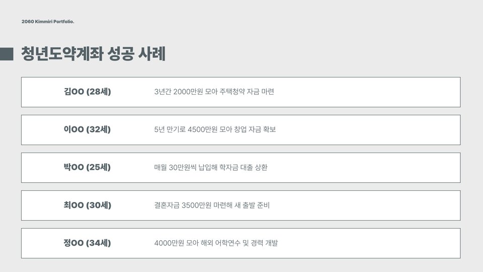 - 정부의 지원금이 제공되어 자산 형성에 큰 도움이 됩니다.