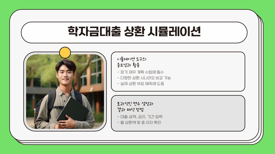 학자금대출은 많은 학생들이 학업을 계속하기 위해 활용하는 중요한 금융 수단입니다. 그러나 이러한 대출은 이자 부담이 따른다는 점에서 신중하게 접근해야 합니다. 오늘은 학자금대출 이자의 계산법과 일반상환 방법에 대해 자세히 알아보겠습니다. 이 글을 통해 여러분이 필요한 정보를 정확히 이해하고, 더 나은 결정을 내리는데 도움이 되기를 바랍니다.